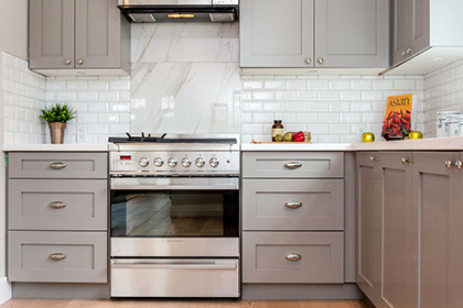 Impeccable, contemporary design. Clean and modern lines. Chrome, quartz and polished porcelain. Custom millwork, oak and pendant lighting.
